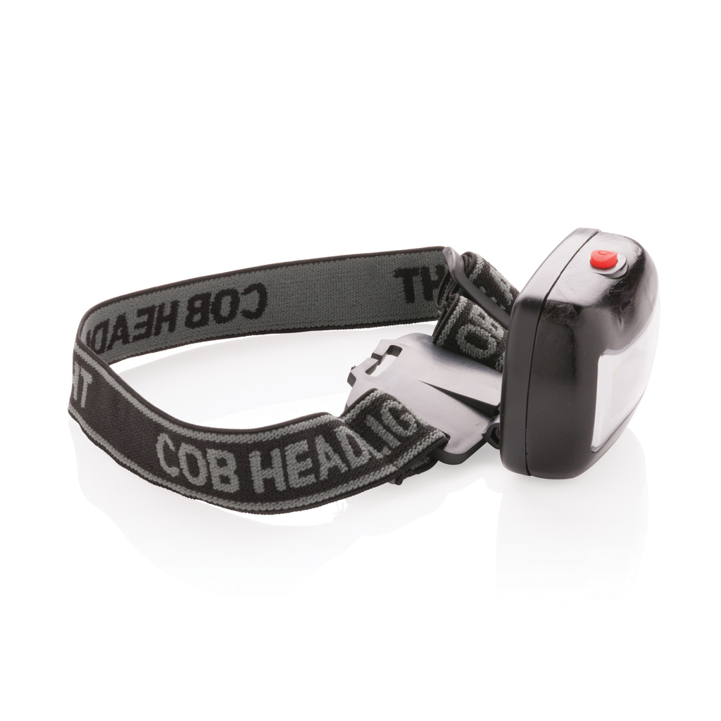 ABS head torch with ultra-bright COB torch. Including adjustable headband to fit all sizes. Including batteries.