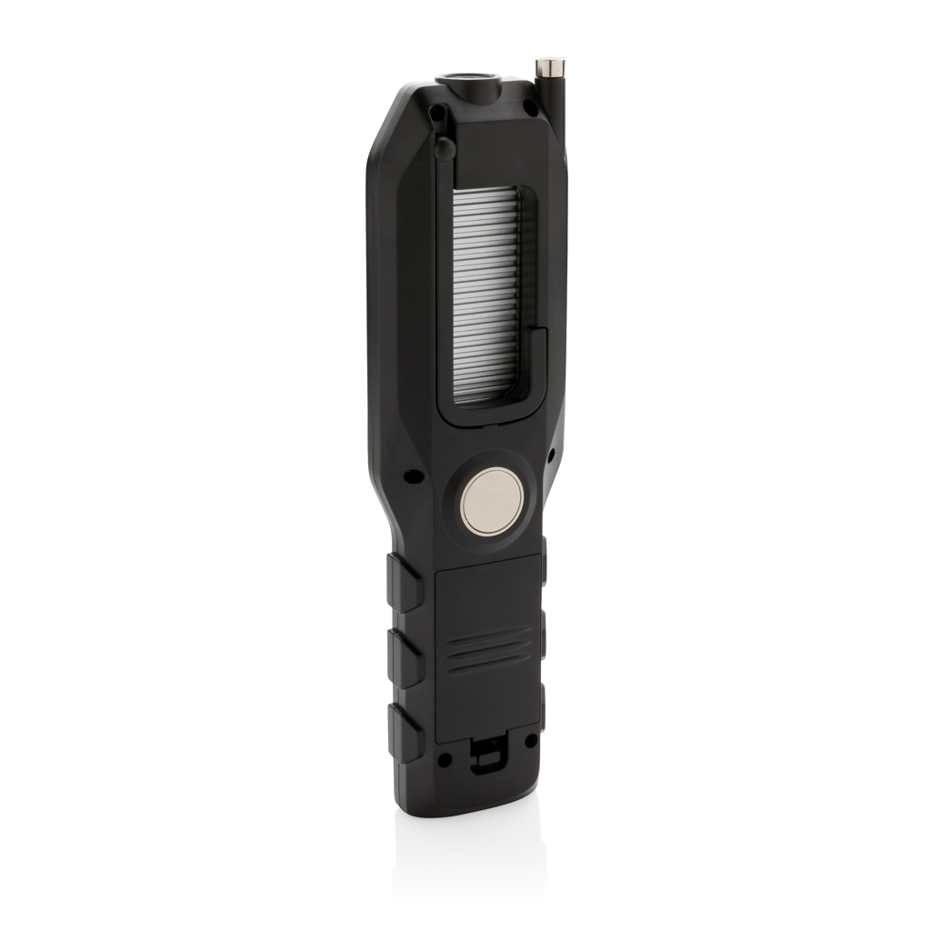 Multi-function work light with 1W LED light and COB light. The COB light has an adjustable angle to light up your work space. With magnet on the back to attach to metal surfaces and extendable 20 cm telescope with magnet to pick up small objects like screws or nails. Led light beam up to 50 metres with 80 lumen. COB light 230 lumens. Including batteries for direct use.