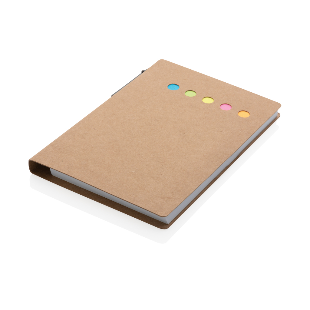 Superhandy kraft sticky notes booklet for all those small notes and reminders during your busy day! The booklet features a kraft cover (350gsm), a big note pad containing 50 sheets; 4 small and 1 medium sticky note pad each containing 25 sheets. Including a small handy recycled paper and ABS pen with blue ink, writing length 800 metres.