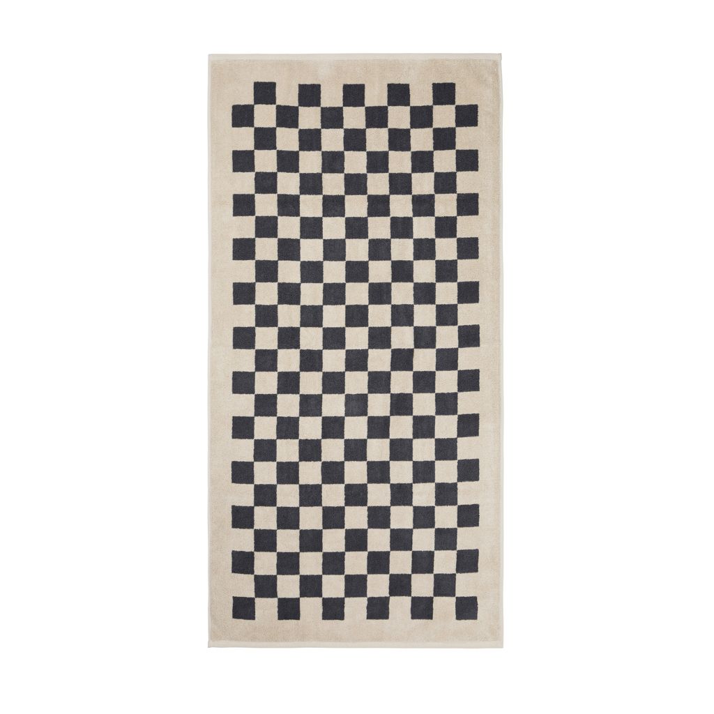 Experience the perfect blend of style, comfort, and absorbency with these exquisite towels. This set offers exceptional softness and functionality. With a plush 500 gsm weight, these towels offer good absorbency and softness. The modern checkerboard pattern adds sophistication to your bathroom decor. The set includes two towels measuring (135x165cm) and two smaller, practical towels measuring (65x40cm). Each set is thoughtfully packaged in FSC®-certified kraft packaging. The Organic Content Standard (OCS) verifies organically grown material and tracks it from source to final product. This product contains 99% OCS certified organic cotton.