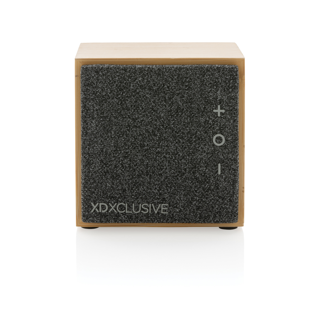 Luxury 5W speaker with clear sound and strong bass. The outer casing is made from FSC 100% certified bamboo. The plastic components are made with RCS (Recycled Claim Standard) certified recycled ABS. Total recycled content: 24 % based on total item weight. RCS certification ensures a completely certified supply chain of the recycled materials. The speaker comes with BT 5.1 for easy and smooth operation up to 10 metres and low power consumption. The 1200 mah battery allows a playtime up to 6 hours and can be fully re-charged in 2 hours. With pick up function and mic to answer (video) calls. Packed if FSC mix kraft box. Including RCS certified recycled TPE charging cable.